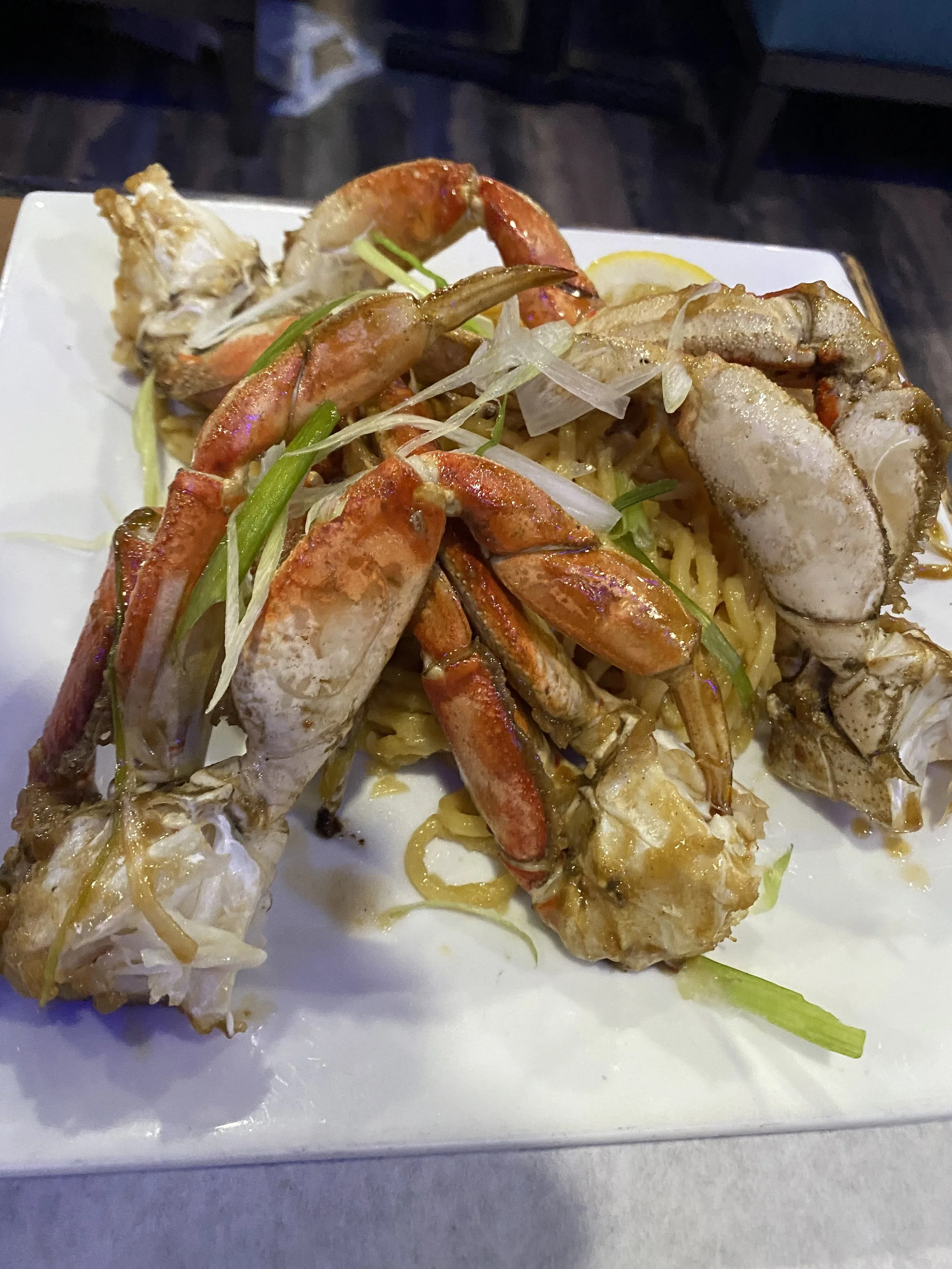 Mandarin Orange, Scallion and Garlic Sauce Crab and Linguine (Type of Crab may change depending on availability)