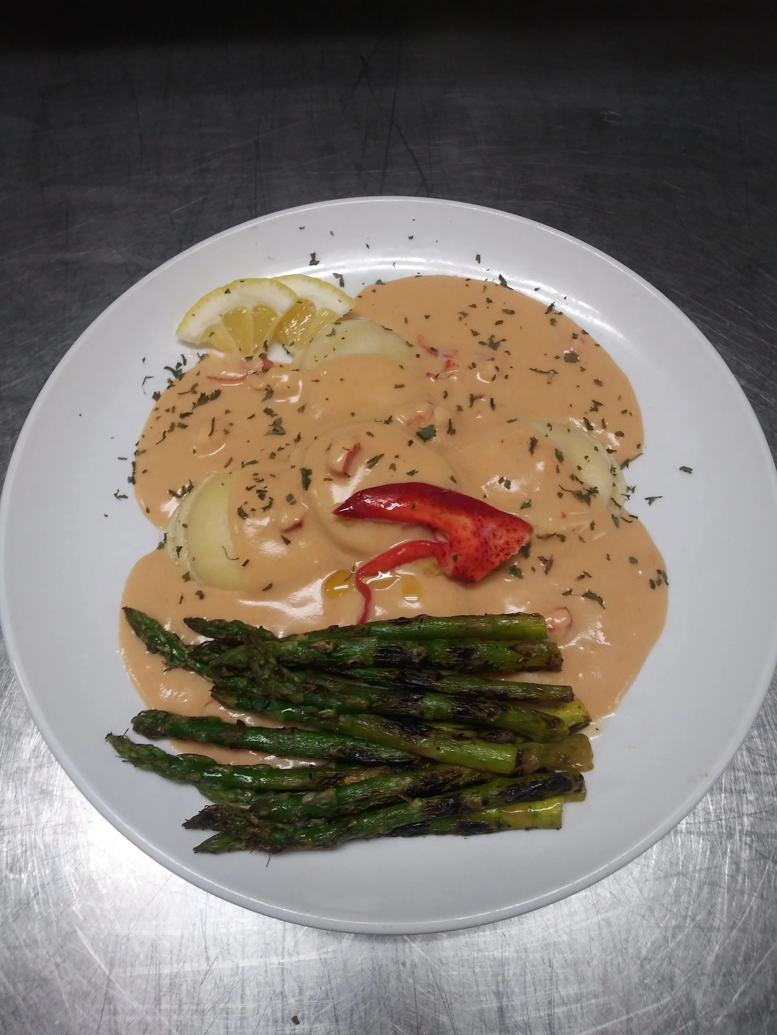 Lobster Ravioli w Charred Asparagus
